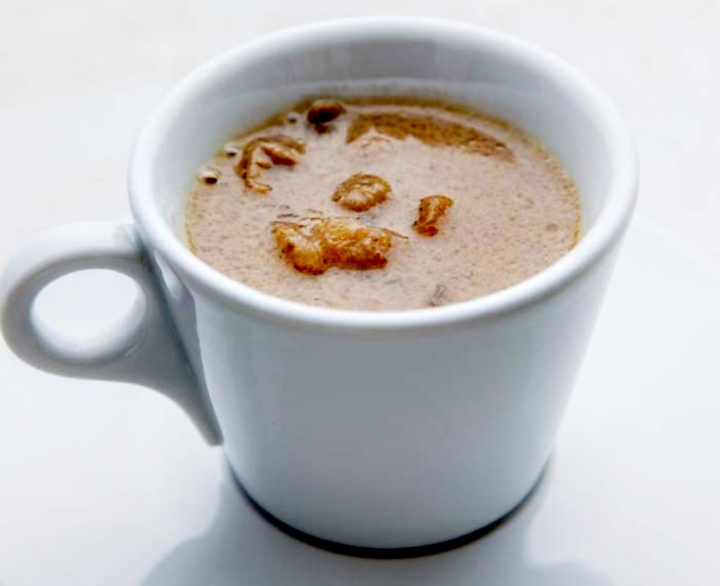 Sopa de cogumelos e castanhas portuguesas servida em xícara